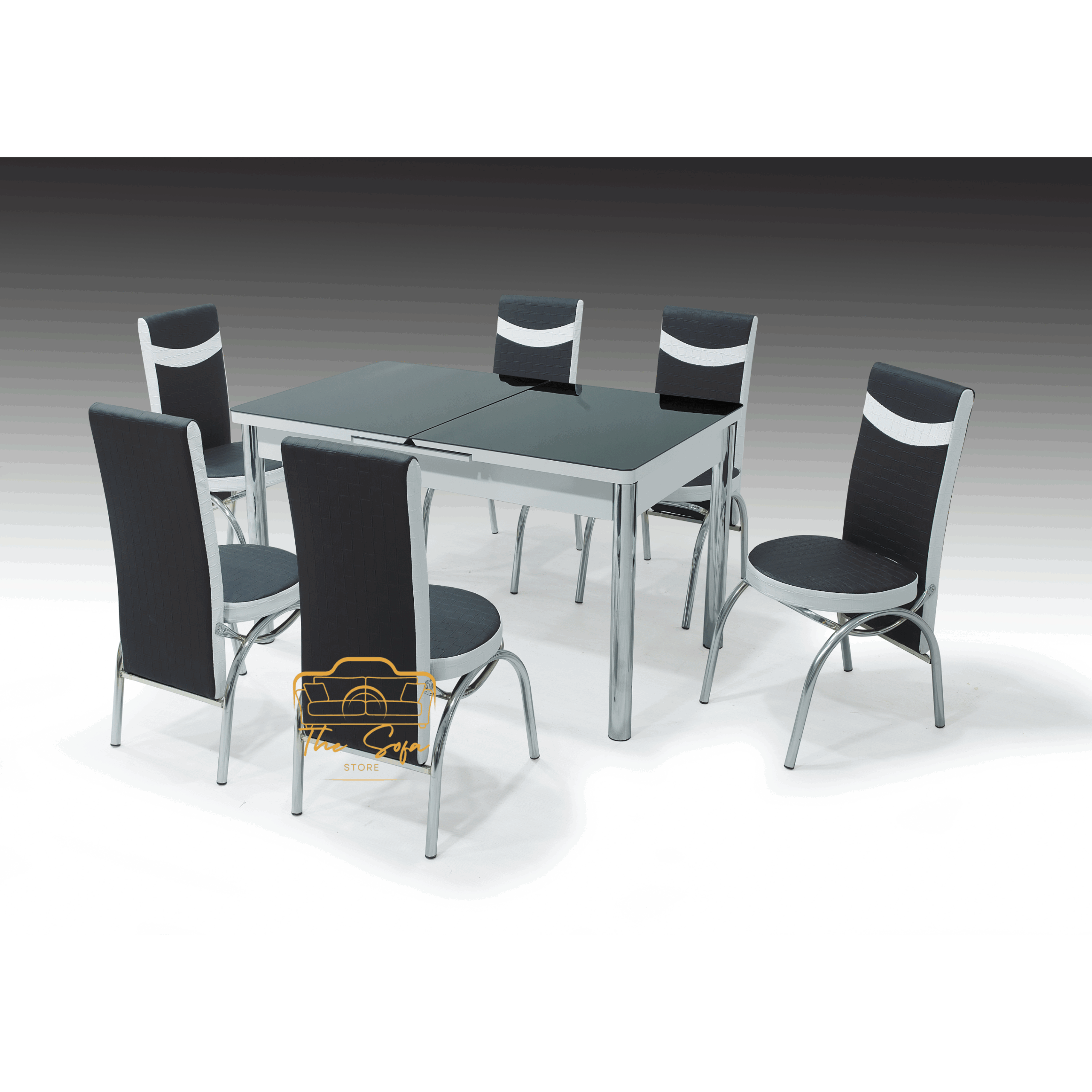 The Full black glass table with 6 chairs is the correct mix of modern style and practical functionality for your dining space. The characteristic of a smooth full black tempered glass tabletop, this food set provides a sophisticated and contemporary look that complements any interior. The set includes six comfortable chairs designed with ergonomic support and stylish finish, making it ideal for family food and entertaining guests. Prepared with durable material, tables and chairs ensure long -lasting use when adding an elegant touch in your home. Upgrade your food experience with this striking black glass dining set. Welcome to The Sofa Store Website
