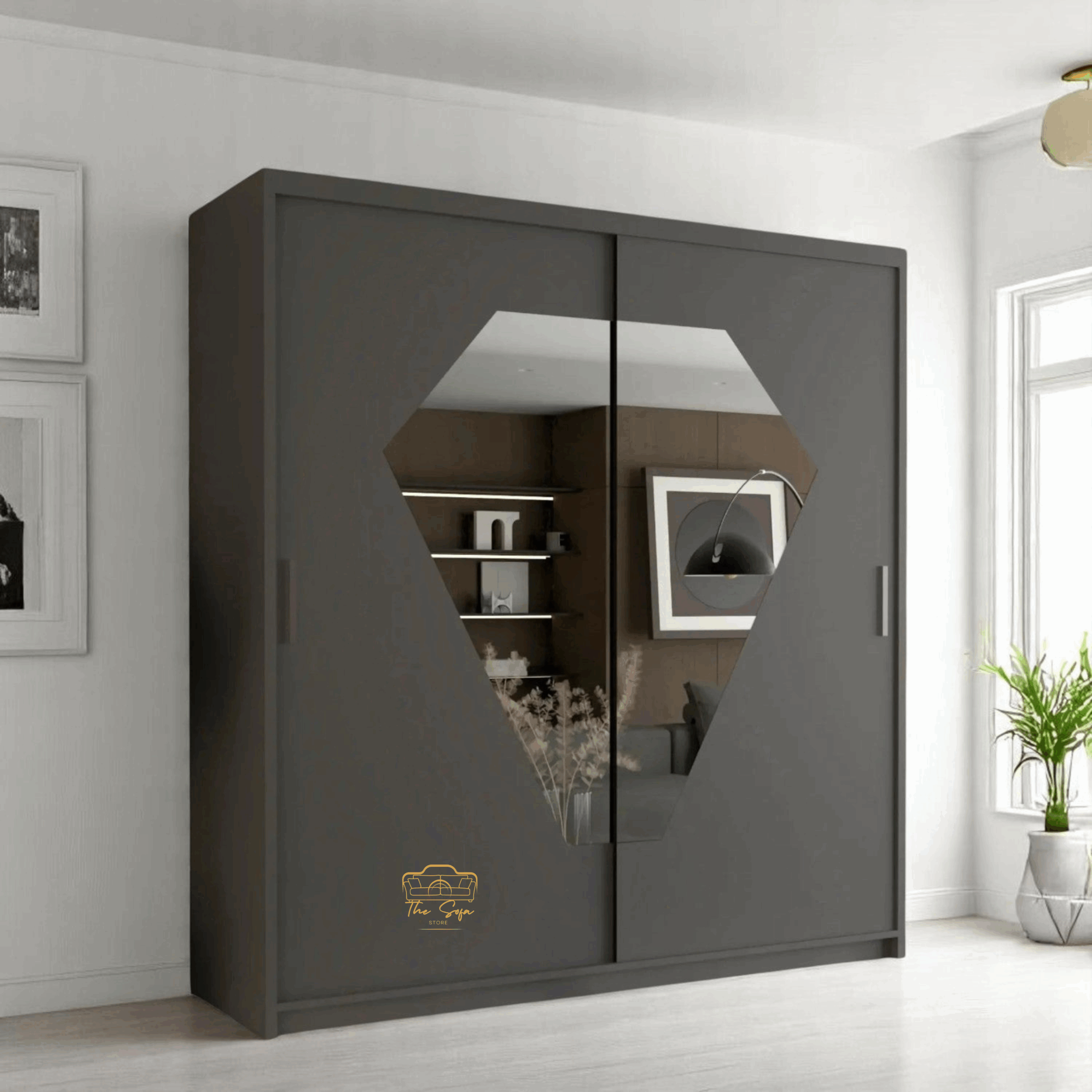 Increase your bedroom with a sophisticated and practical diamond sliding cupboard. Designed to maximize the space and add a modern touch to your home, this cupboard has smooth slipping doors that easily glide, making it perfect for all sizes of sizes.With sufficient storage capacity, the diamond cupboard provides a smart combination of hanging rail and adjustable shelves, allowing you to arrange your clothes, shoes and accessories efficiently. Its contemporary design with clean lines and a smooth finish ensures that it complements any internal style from minimal to classic.Refresh Your Home with The Sofa Store Website