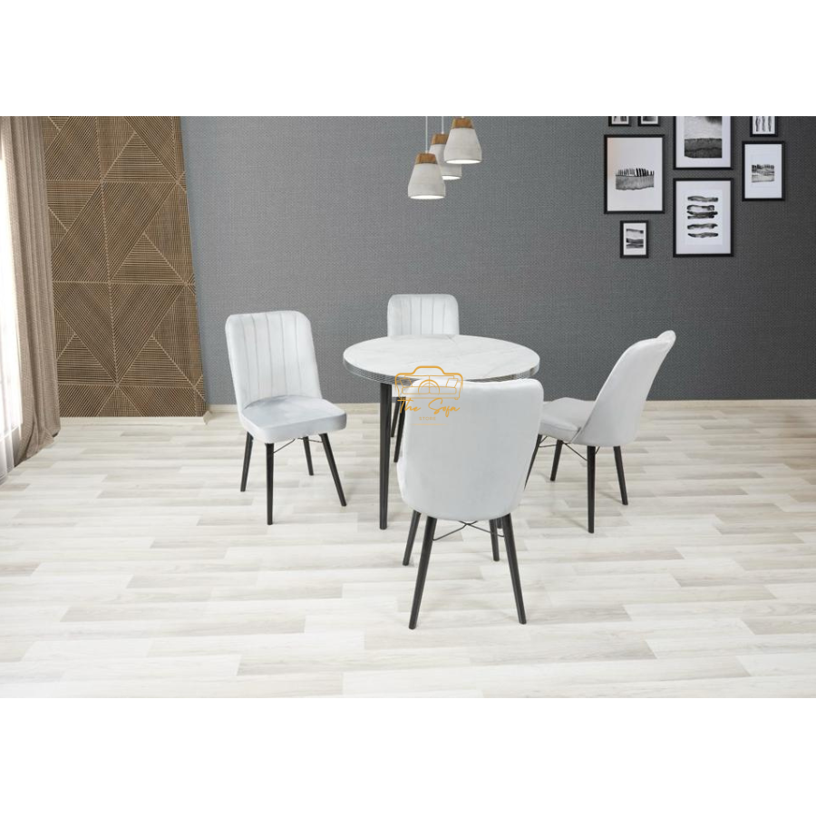 Lagina Round Wooden Table 90 cm AND 4 GREY FABRIC CHAIR . GREY COLOUR ( Black Leg)