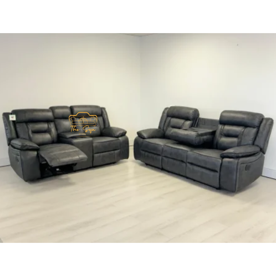 - Orlando 3+2 Electric Recliner Sofa sets in gray and black leather
