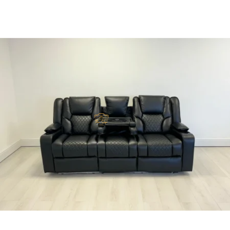 All eyes on you — no introduction needed. Make a powerful statement in your living room with the Orlando 3+2 Electric Recliner Sofa Set, where sleek design meets exceptional comfort. Featuring smooth electric recliners, premium grey and black leather upholstery, and smart built-in USB ports and cupholders, this sofa set commands attention while offering the ultimate lounging experience. Ready to transform your space into the centerpiece of comfort and style? Bring home the Orlando set today and let your living room do all the talking.