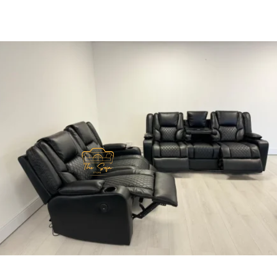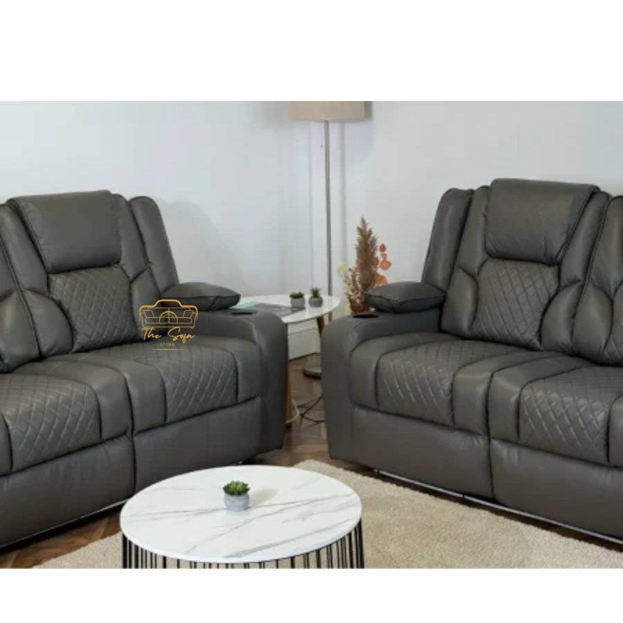 The Orlando 3+2 Electric Recliner Sofa sets in gray and black leather provides the correct combination of comfort, functionality and contemporary style. Designed for modern life, this set includes a three-seater and a two-seater sofa, both include smooth electric reclining mechanisms for spontaneous relaxation. High quality gray and black leather upholstery, Orlando set brings a smooth, two-tone finish to your living space. Liberally ensures better resting comfort for padded seats, backrest, and armrest everyday use, while the underlying features facilitate up to the next level. Each piece is equipped with integrated USB charging port, allowing you to strengthen your equipment without leaving your seat. Whether you are hosting friends, spending time with family, or just getting uncontrolled after a long day, Orlando Electric Recliner set connects both luxury and practicality to any living room.Restyle Your Home Style at The Sofa Store Website.