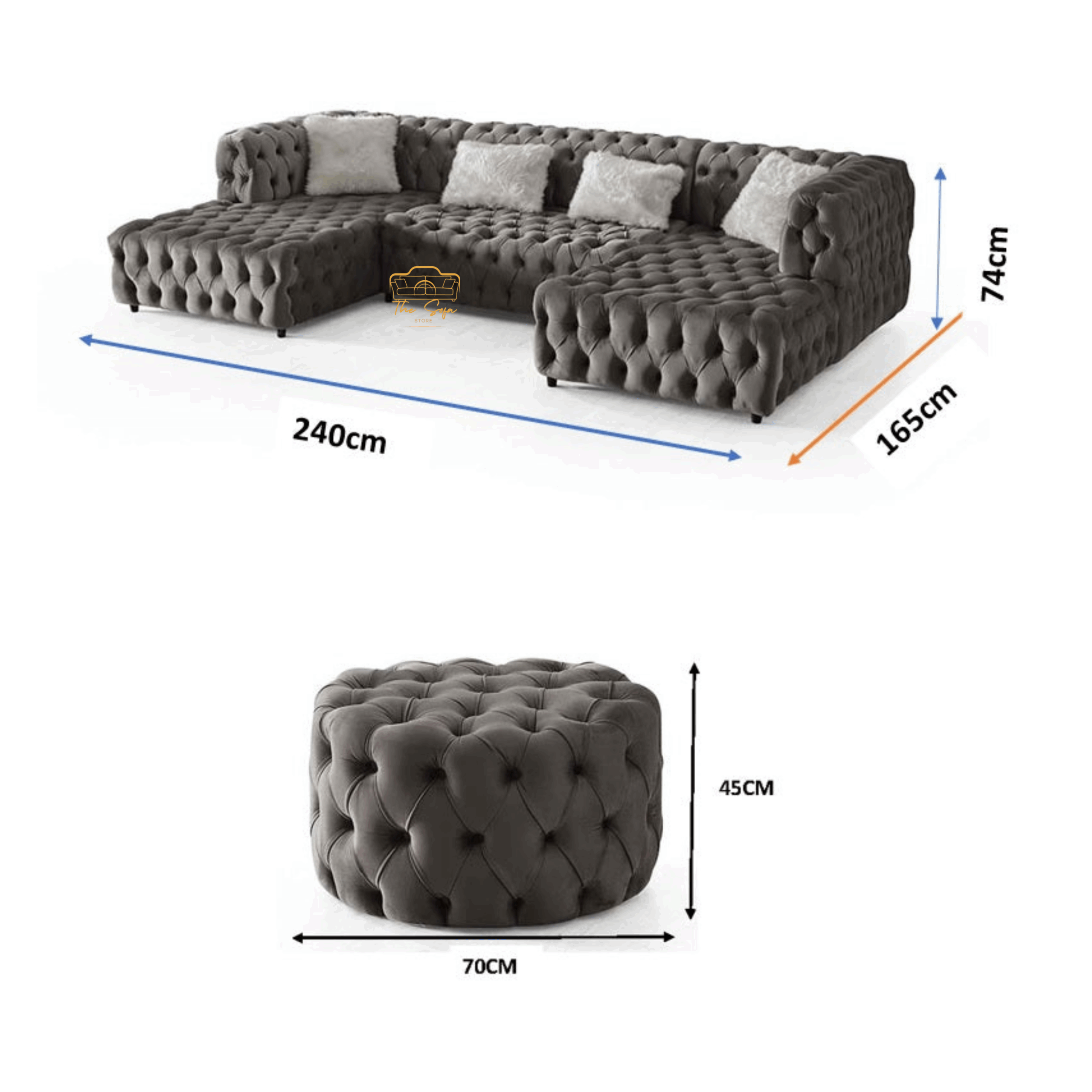 Bring spacious luxury and modern elegance into your home with The U-Shaped Rocky Chesterfield Grey Sofa, available now at The Sofa Store. Featuring plush grey upholstery, deep button tufting, and a bold U-shaped design, this sofa set offers unmatched comfort and style for family gatherings or entertaining guests. Perfect for large living spaces, it’s a statement piece designed to impress and built to last. Don’t wait to elevate your living room — make The U-Shaped Rocky Chesterfield Grey Sofa the centerpiece of your home today.