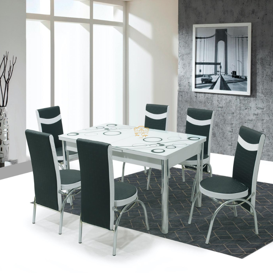 Elite your food experience with white bubble glass table set, characterized by a smooth and stylish glass tabletop complemented by six comfortable chairs. Completely combined contemporary design with practical functionality, this food set is ideal for family food, ceremonies and entertaining guests. The ancient white finish increases any internal decoration, while the bubbles add a touch of glass surface sophistication and durability. Each chair is designed for ergonomically maximum comfort, causing long dinner and conversation a pleasure. Prepared with high quality materials, this set ensures long lasting stability and easy maintenance.Whether your location is modern, minimal, or chic, white bubble glass table with 6 chairs is the perfect center for creating an inviting and elegant dining area.Discover Comfort at The Sofa Store Website